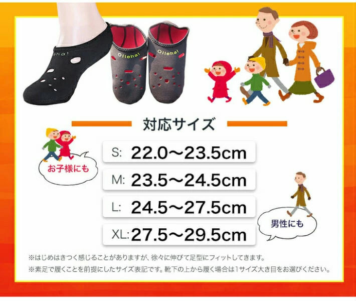 。靴下の上に履く場合やサイズの境目の場合は大きめをお選び下さい。